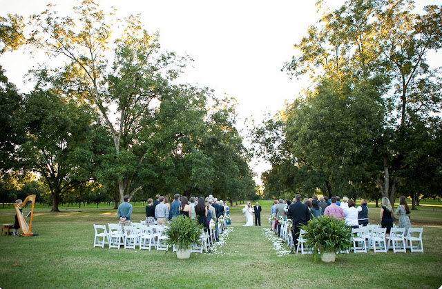 This outdoor vintage-inspired wedding was filled with personal details. The bride’s bouquet was filled with her grandmother’s costume jewelry as a way to honor the importance of family. They gave saplings to each guest as a favor to symbolize the way their love would grow over the years. They filled their reception with their favorite foods, including some Middle Eastern pastries to honor the groom’s roots and Coca-Cola Classic, a true Southern staple (and my personal favorite guilty pleasure beverage!) I love all of the personal touches this couple incorporated.