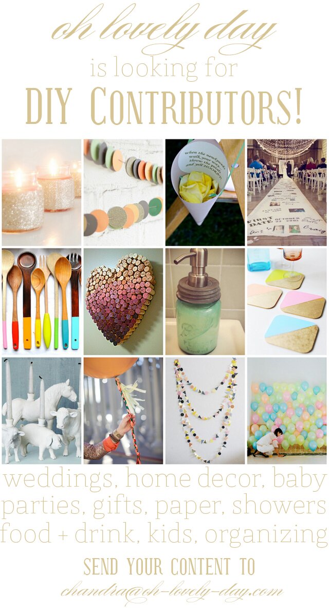 While I have lots of ideas and fun things to share, we’re also looking for content submissions for Lovely Ever After. Do you have an inner Martha dying to come out? Are you a mom with lots of tips on all things baby? Are you a newlywed (or an old-married like me) with tips for keeping the honeymoon going into your marriage? Oh Lovely Day wants to hear from you.