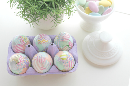 what a brilliant idea – I LOVE WASHI TAPE. It’s awesome how it looks like patchwork on the eggs – so pretty.